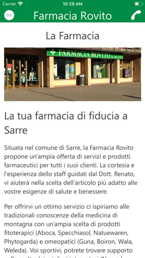 L'App della Farmacia Rovito Sarre ti permette di avere i tuoi farmacisti di fiducia sempre a portata di mano con consigli, informazioni, prenotazioni, ordini, richieste di prodotti e servizi in farmacia.