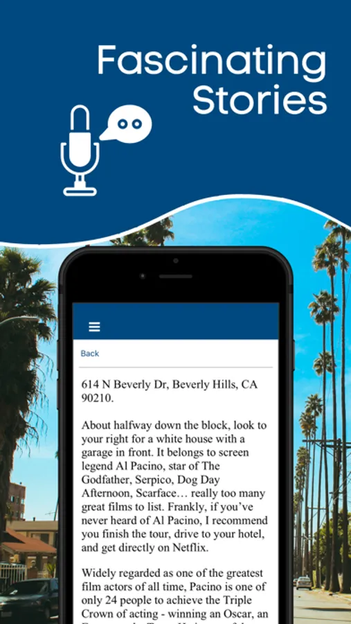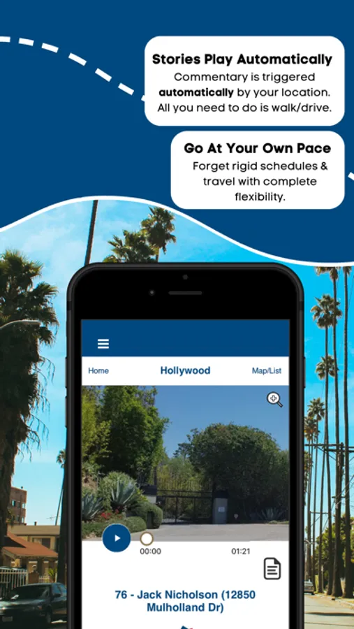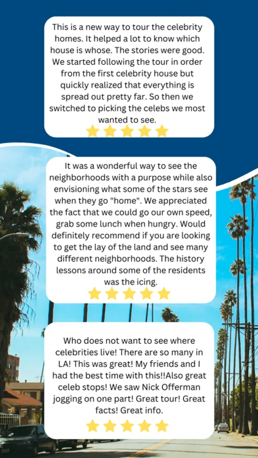 Welcome to the GPS-enabled offline driving tour of Hollywood Celebrity Homes Tour in Los Angeles, California! Get ready to see the lavish estates of all your favorite celebs! This self-guided, totally flexible tour of Hollywood Celebrity Homes shows you to all the hottest houses in Hollywood and Beverly Hills and offers insight into their famous occupants.
