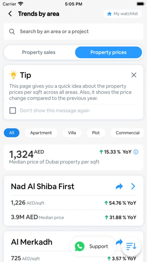With its real market insights, property trends, information on property prices and construction progress reports, all sourced from Dubai Land Department (DLD), it empowers you with direct control and 100% transparency over your real estate engagements.