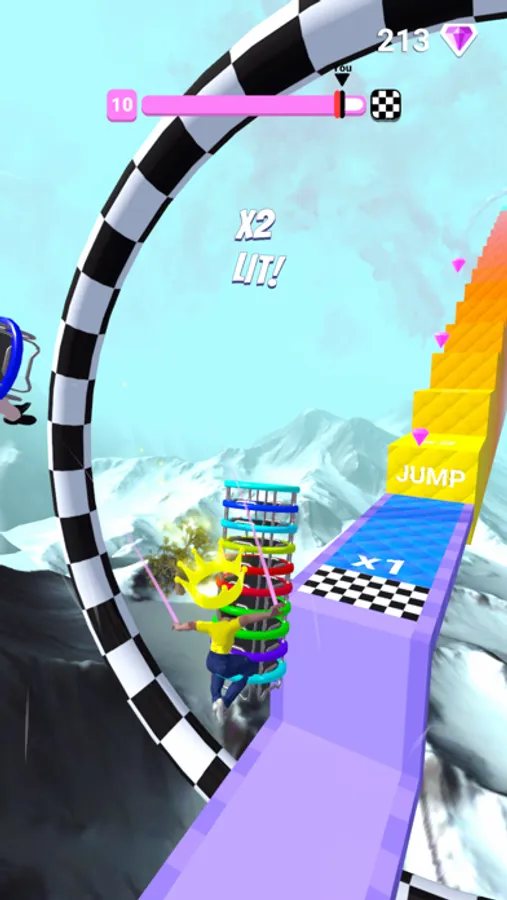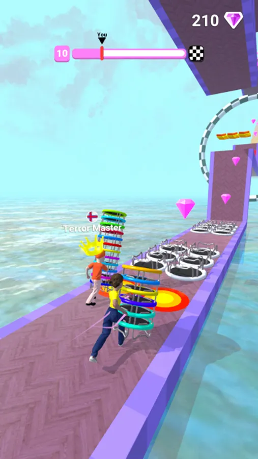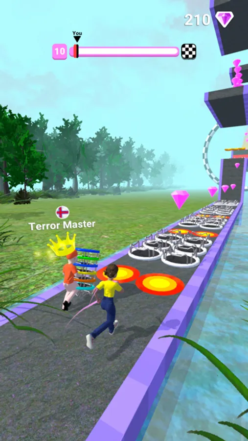 Don't hit red obstacles, they will slow you down and remove a trampoline from your hands :(