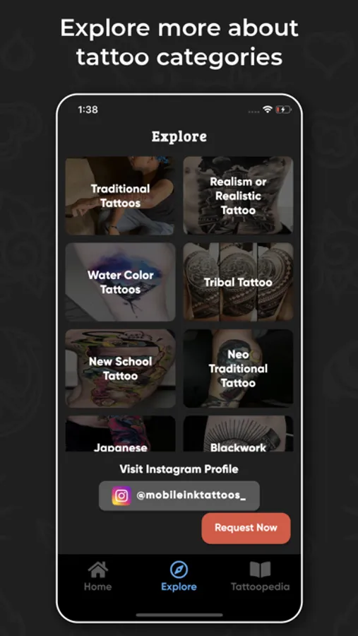 To get ink a tattoo, requesting an appointment is really easy. Just download Mobile Ink Tattoos application and request for a specific day with specific tattoo type that you want. Application also include Mobile Ink Tattoo Studio works to get you fantasize about your tattoo expectation & we'll make sure to fulfill it.