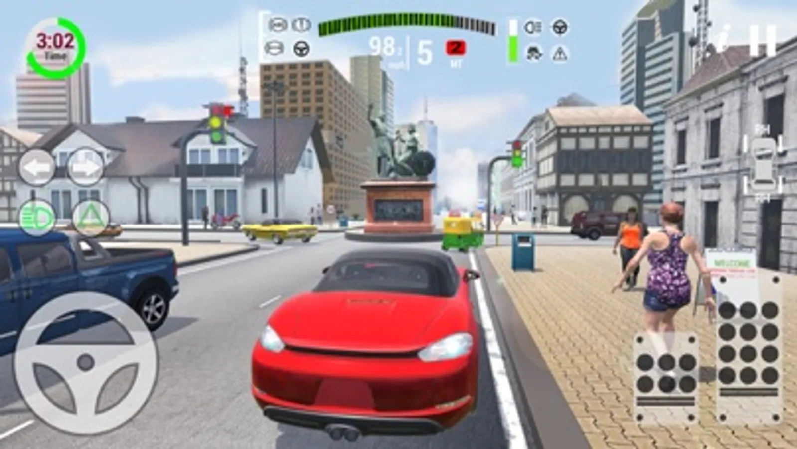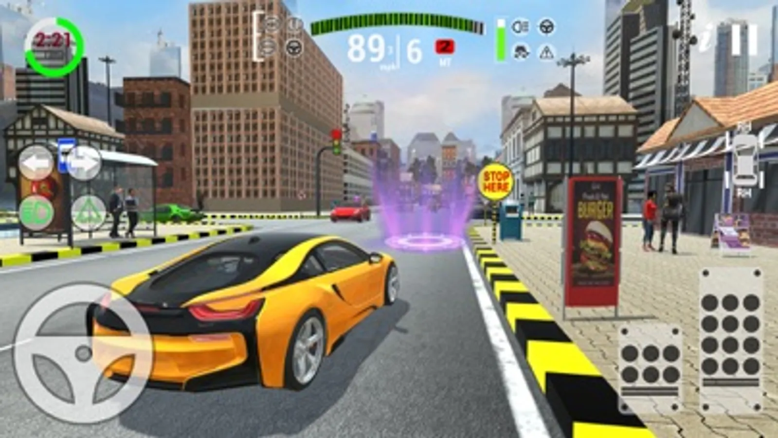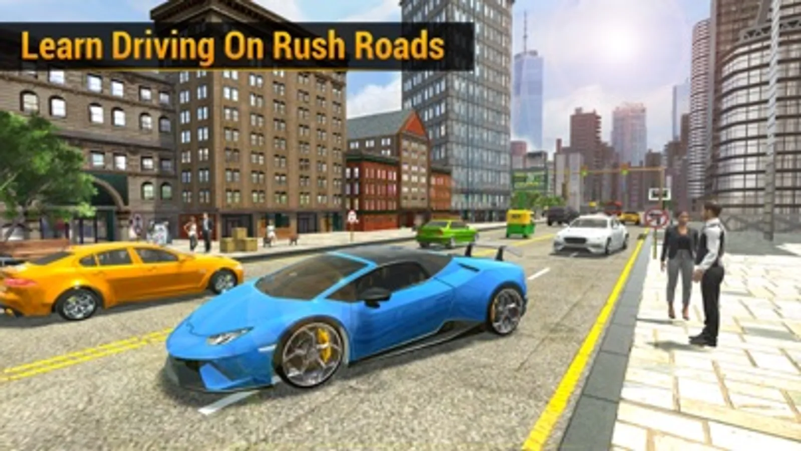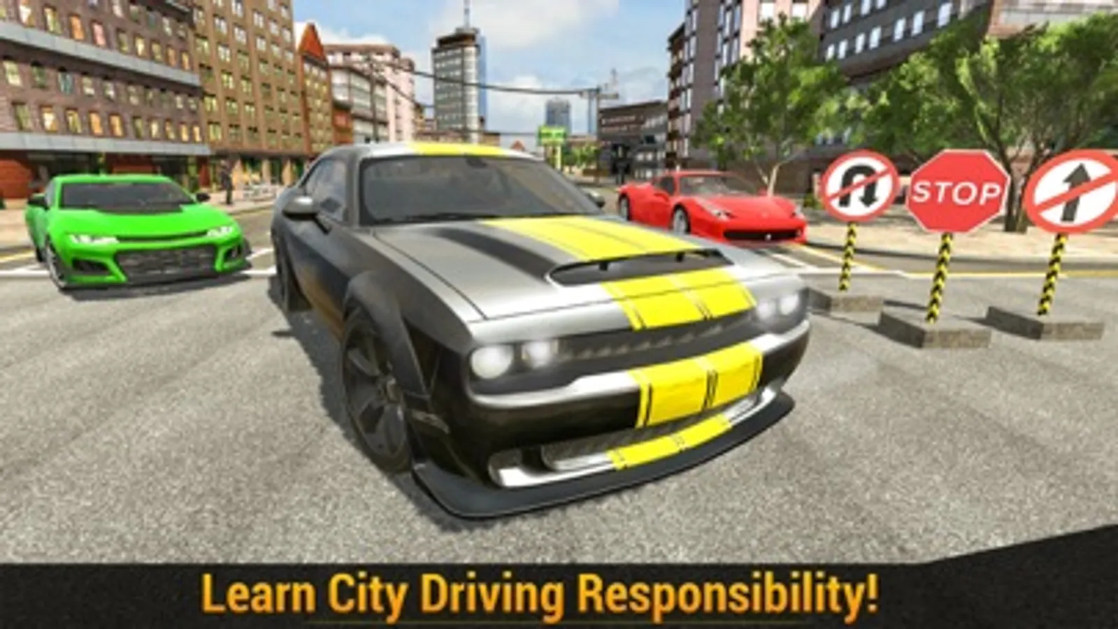 Also learn warning signs, railroad and light rail transit grade crossing signs, limited vehicle storage space between intersection and tracks, temporary traffic control signs, Mandatory movements in lanes, pedestrian and bicycle signs, pedestrian detour signs, bicycle guide signs, pedestrian signal education now learn these all driving rules & prove yourself a real champion driving master of this driving school game.