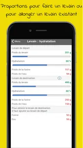 Sourdough bread: enter the characteristics of your sourdough, and the amount of flour for your bread, and the app calculates the amount of water and salt to add.
