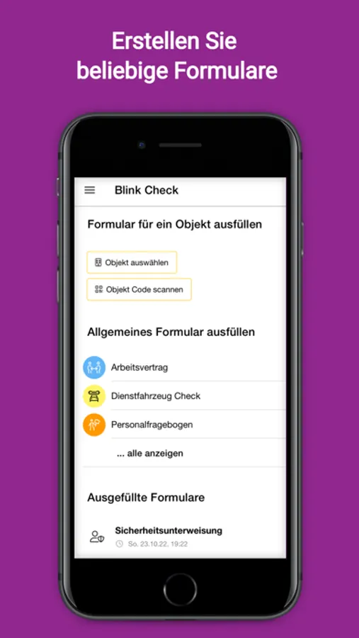 Mit Blink Check erstellen Sie frei konfigurierbare Checklisten oder Formulare, die per App oder im Browser ausgefüllt werden können.