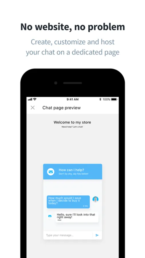 No website, no problem – Create, customize and host your chat on a dedicated page.