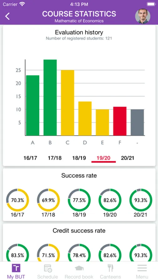 The mobile application for students at BUT is an everyday tool for a university student. He has an overview of his evaluations and his agenda. He can find a building or a room on the map where he has classes. He can easily find his teacher's schedule or subject to arrange consultations or replace the class. He can use the application to top up money on the canteen account and much more. Now with functions for teachers!