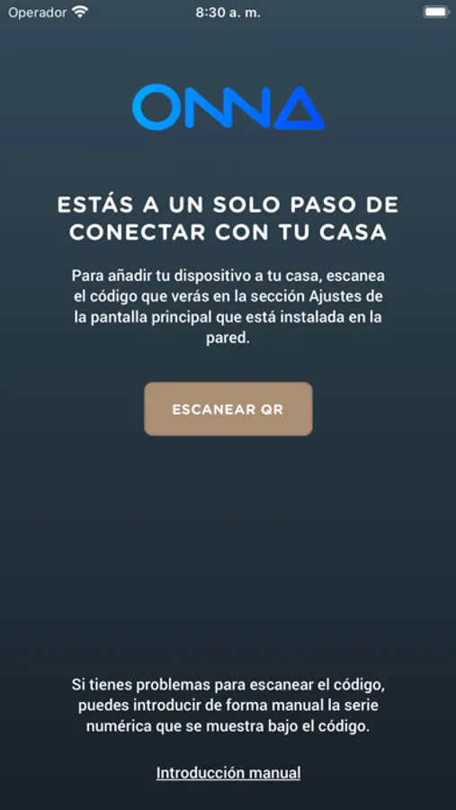 Esta app es parte del sistema Onna y requiere de un equipo Onna para funcionar. Permite el control remoto de tu vivienda o edificio simplemente escaneando un código QR que proporciona tu panel táctil Onna.