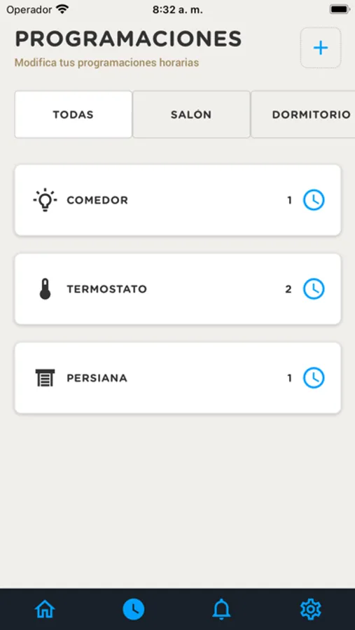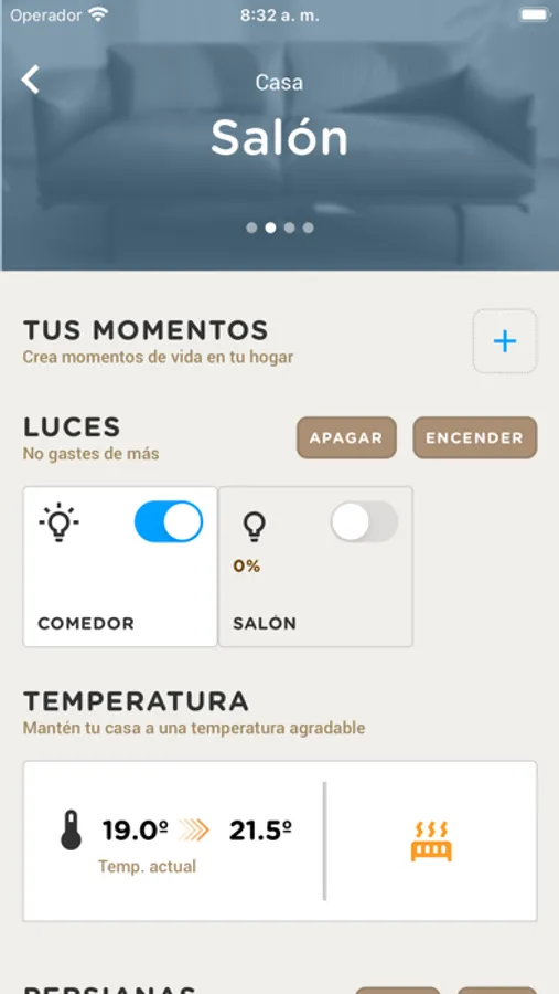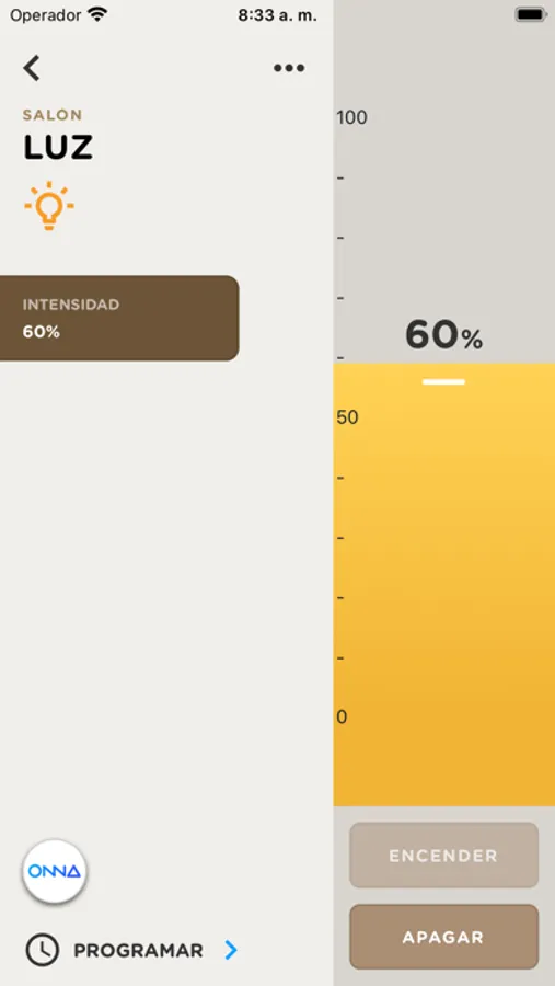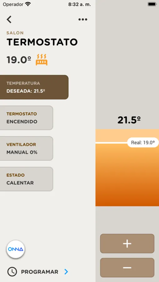 La aplicación proporciona un nivel de acceso idéntico al que se obtiene actuando localmente sobre tu dispositivo Onna. Entre otras funciones permite controlar: