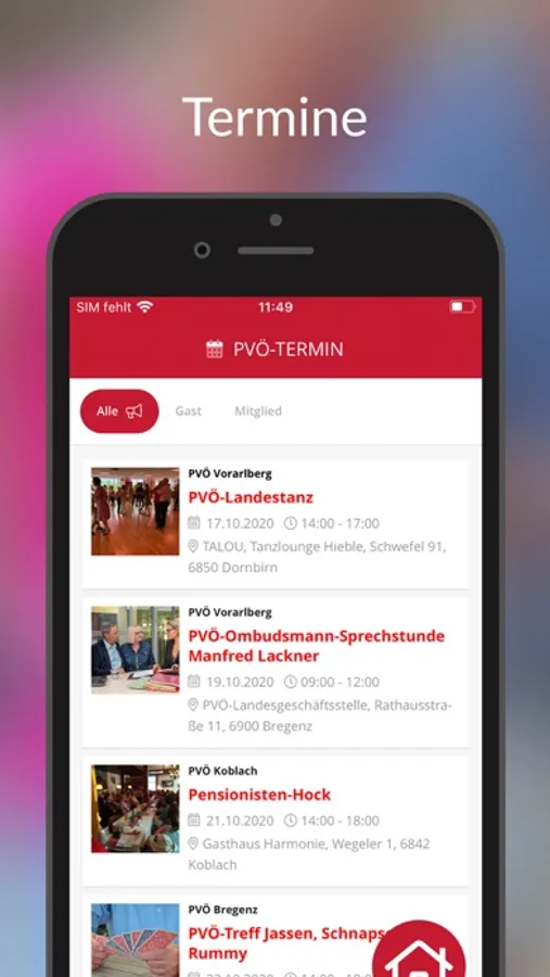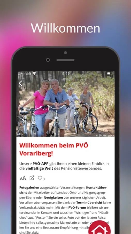 Sie liefert dir auf dein Smartphone die vielfältige Welt des Vorarlberger PVÖ, seiner 40 Ortsverbände und den mehr als 150 Freizeit- und Sportorganisationen.
