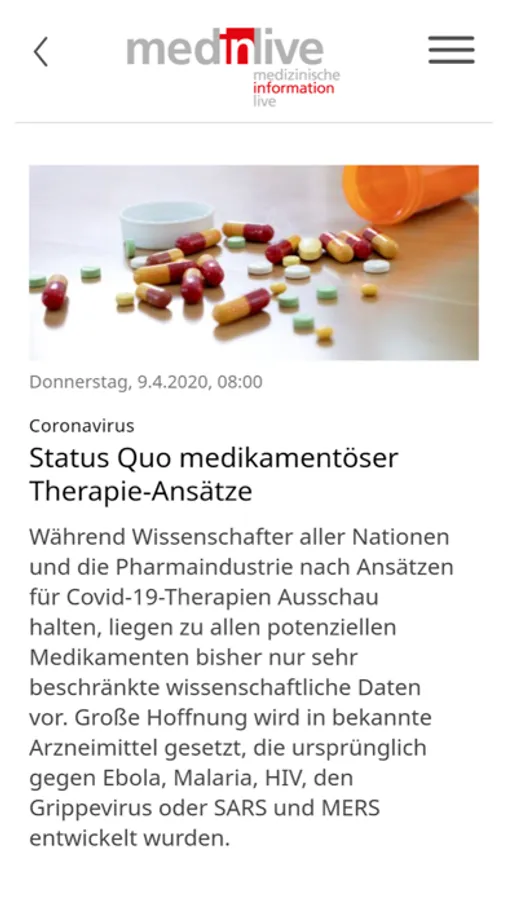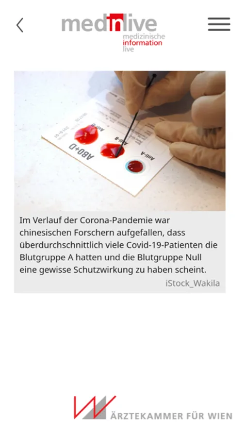 App zur Online-Plattform medinlive der Ärztekammer für Wien, die mit medizinischer Information aus den Themenbereichen der Gesundheitspolitik, der Wissenschaft und Gesellschaft täglich aktuell befüllt wird.