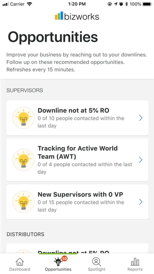 The new BizWorks Plus Mobile App will help track, manage and grow downline business by providing near real-time business insights, opportunities and reports to enable timely and targeted actions.