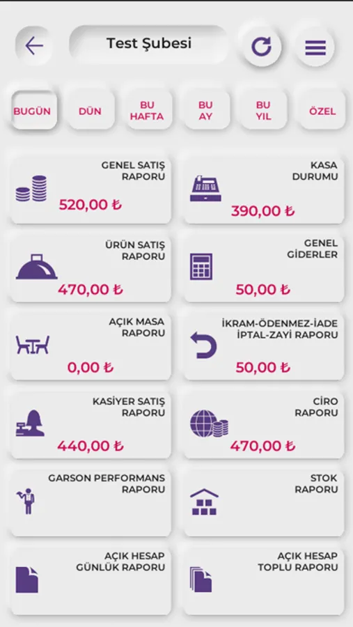 Müşterilerimizin işletmelerine ait anlık ve geriye dönük olarak satış bilgilerini raporlanmasını sağlar.