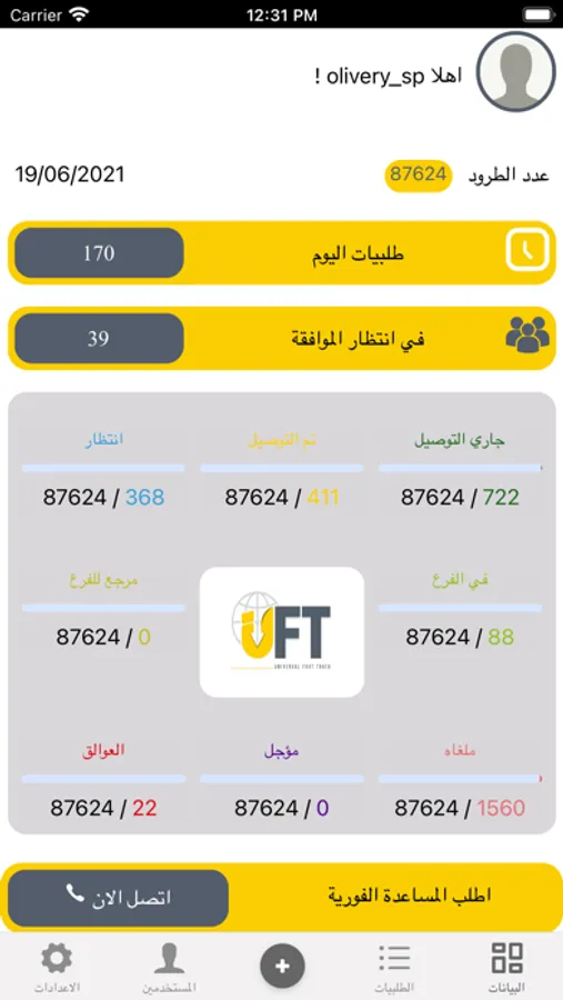 UFT is a logistic company that provide a logistic services , our App allow the client to send,review their orders and follow up with any changes on these orders.