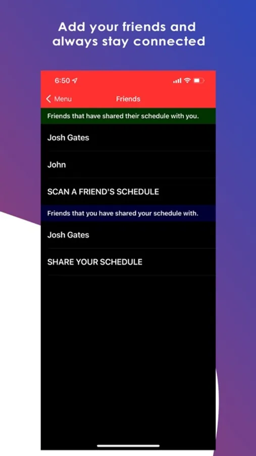 -Once your friend shares their schedule, you can add the event/features to your own schedule.