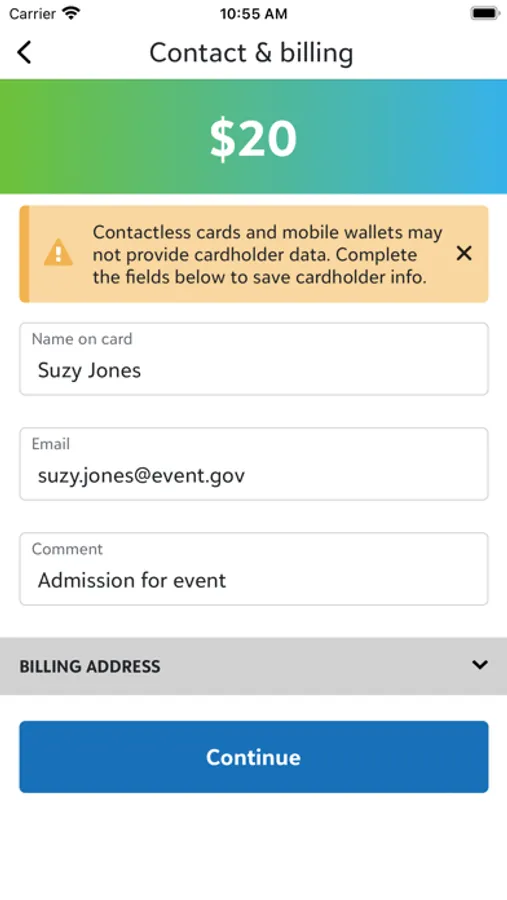Whether for event tickets, admission, or merchandise, our improved app allows you to accept credit card and mobile payments on a phone or tablet. Simply download the app for free and order your Bluetooth™-enabled payment device from your Blackbaud Merchant Services Client Portal.