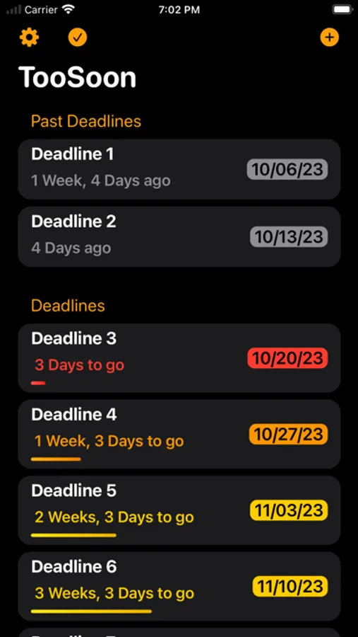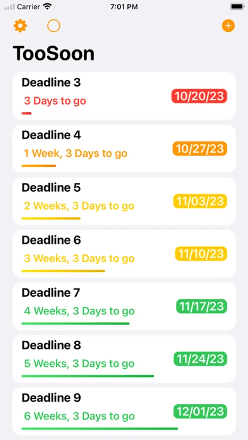 With the TooSoon app you will never miss a deadline again.