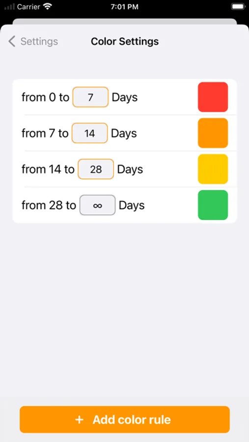 Through a simple view in the app or in the widget, you are always reminded of upcoming appointments and always know when the next appointment is due because of the configurable color scale.
