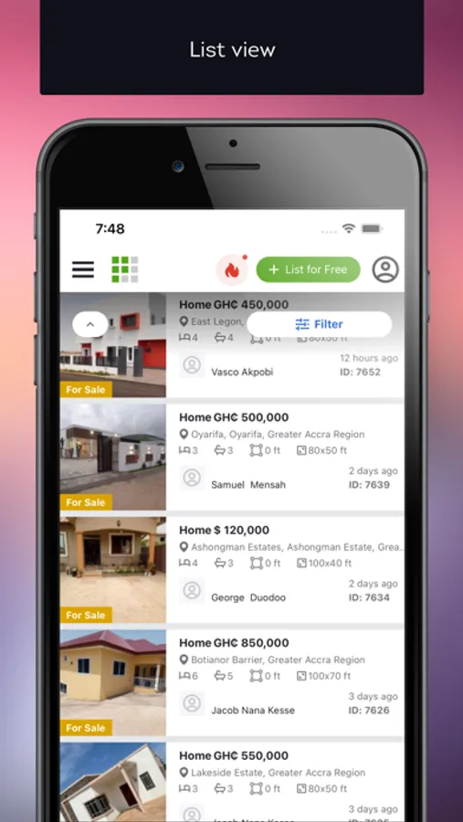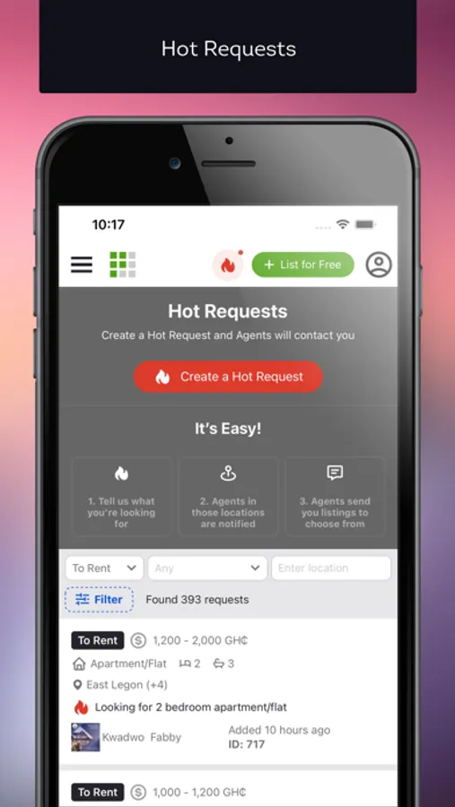Plotam is a FREE-TO-USE platform for listing and finding real estate properties in Ghana. Browse the map for listings, search with filters, or post your own listings! Looking for an agent or landlord in specific areas? Post a Hot Request and let the agents pitch to you! Chat with other users!