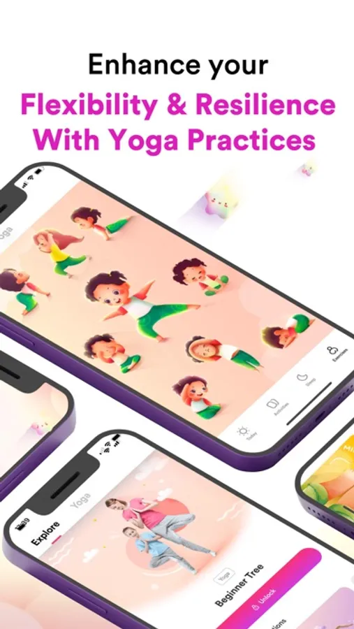 Our app uses mindfulness activities for kids to give them the valuable skill of harnessing their calm from within. We use calming techniques for kids that recenter them in their bodies and bring them back to the present moment like yoga, relaxing sleep guidance, and guided meditations with our lively characters: Dede, Milly, Maya, Franco, and Megalu – the super sweet dog.