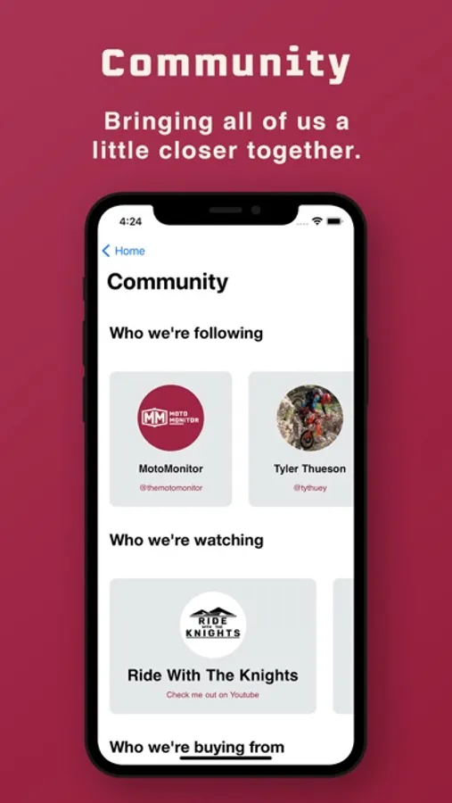 The Community page is the latest & addition to the feature set of the MotoMonitor! Take a peak at each of the individuals, youtube channels, & small business that we are supporting. These are the best of the best! Tapping on any of these community members will take you directly to where you can engage with them!