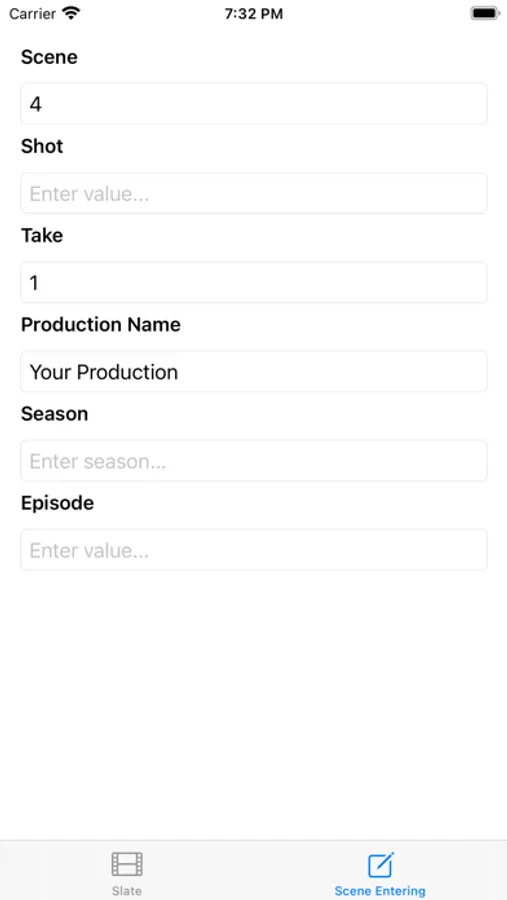 Double tapping on the Take and Scene will automatically increment the value. You can also enter in the scene, shot, take, and episode as well.