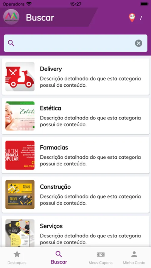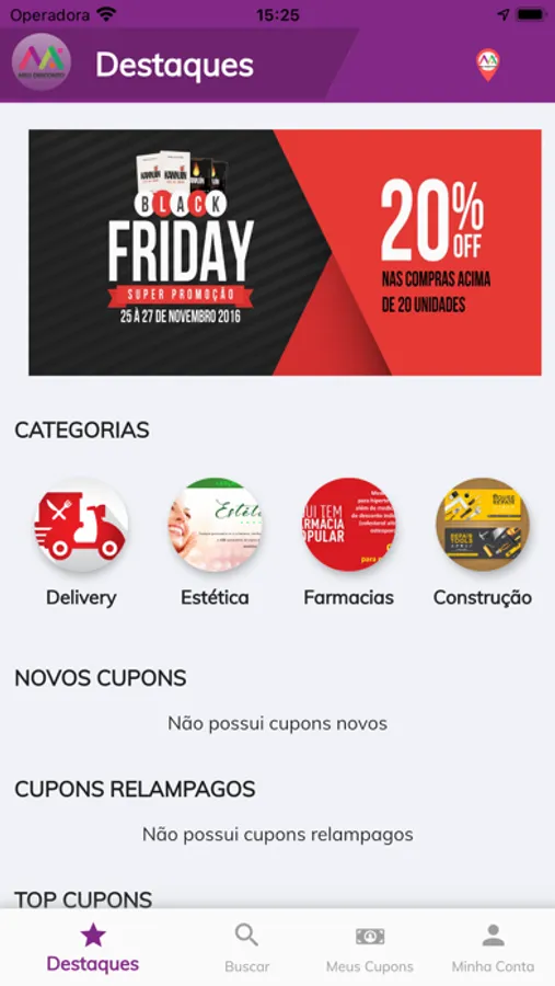 O aplicativo tem como objetivo disponibilizar cupons de descontos que poderão ser utilizados pelos clientes do aplicativo, onde o cliente poderá adquirir desconto em produtos dos estabelecimentos vinculados ao aplicativo