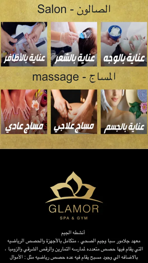 معهد جلامور سبا وجيم الصحي ، متكامل بالأجهزة والحصص الرياضيه المتعدده لممارسه التمارين والرقص الشرقي والزومبا ، بالاضافه الي وجود مسبح يقام فيه عده حصص رياضيه