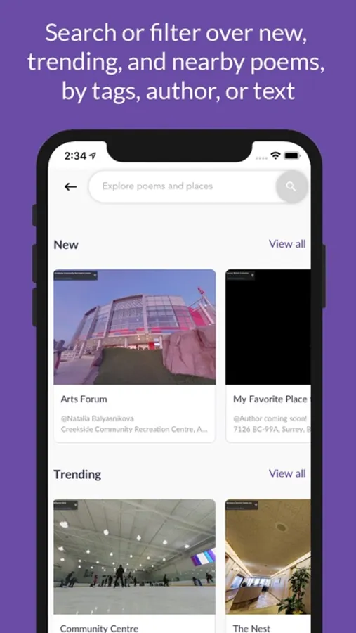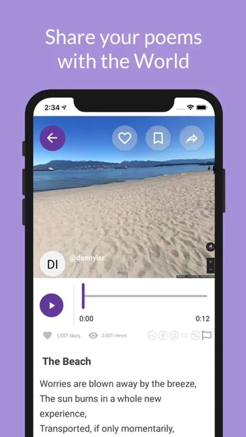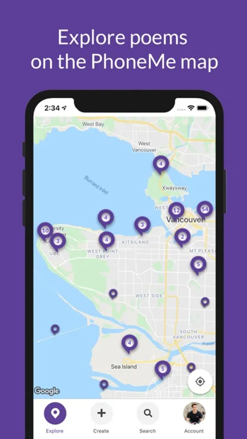 Phoneme provides a creative space for you to write poems and record them. You can save drafts or publish the poem instantly. Choose the perfect Street View panorama or take a photo of the location, add hashtags, and put your new poem on the map. You can share notifications with your whole network. You can retain copyright of all your poems or choose a creative commons licence so others can sample and remix your words.