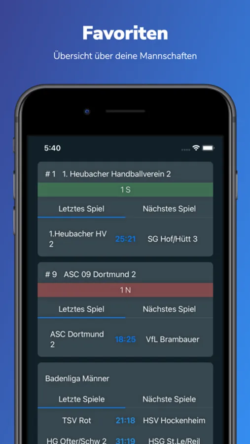 Sie können Mannschaften oder auch ganze Ligen favorisieren um damit Benachrichtigungen zu neuen Spielergebnissen zu erhalten.