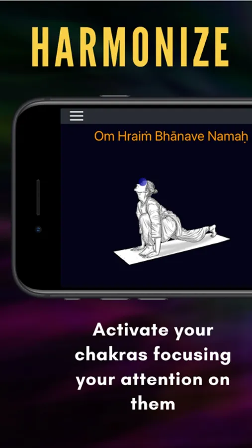 While performing Surya Namaskaram yoga with the Sun Namaskar APP, you not only tone your muscles with an excellent yoga routine, but also harmonize the chakras, which will spiritualize your practice.