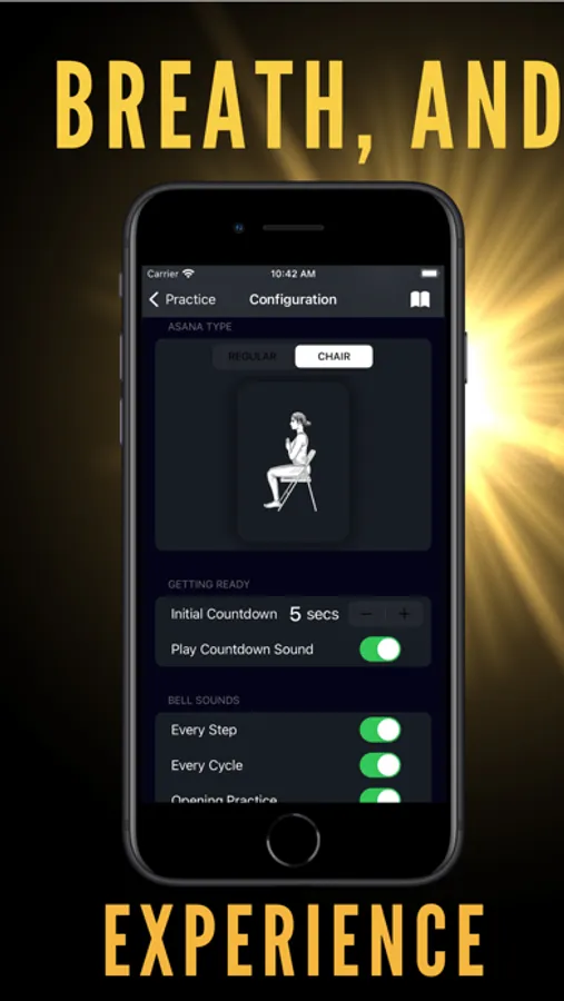 CLOSE YOUR EYES WHEN PRACTICING FOR A DEEPER EXPERIENCE: The prime purpose of bell sounds is to get you to close your eyes when practicing Sun Salutations. The way to be aware of the changes in asanas is by playing the Sun Namaskar APP temple bell sounds.