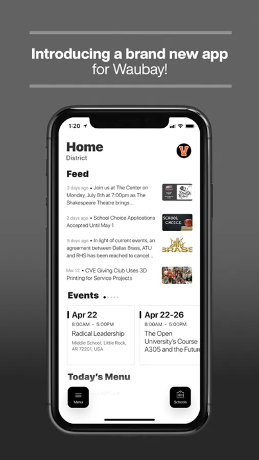 The event section shows a list of events throughout the district. Users can add an event to your calendar to share the event with friends and family with one tap.