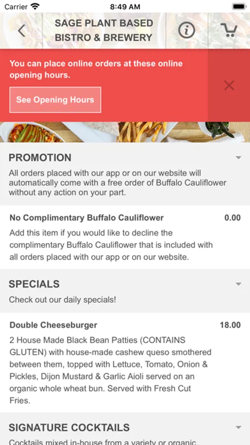 Sage Plant Based Bistro & Brewery is delicious food with nothing missing! Craving our famous buffalo cauliflower or our hand tossed pizzas? Our menu includes everything from juices and smoothies to American classics and dishes inspired by cuisine around the world. Our brewery creates one of a kind craft beers and signature kombuchas. Use this app to personalize your experience and benefit of the easiest, fastest way to order your favorite food.