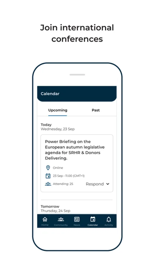 RSVP to launch events, international conferences and parliamentarian study tours directly from the app, see and communicate with other participants, and receive logistical updates to your phone.