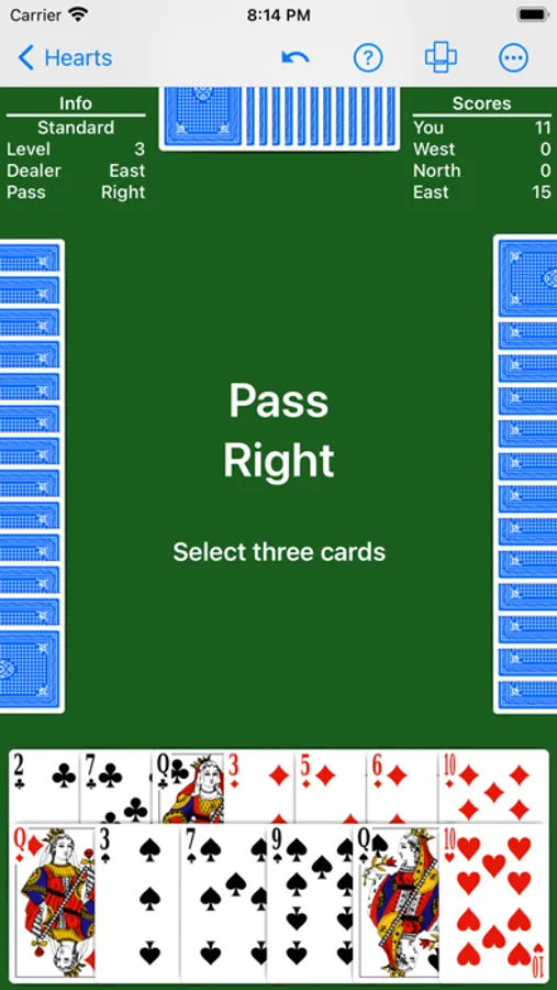 • Number of cards to pass. Choose to pass from 3 to 5 cards.