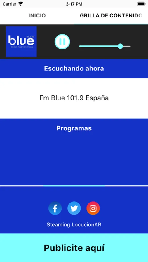 Fm Blue 101.9 es una estación de radio que transmite desde la Ciudad Santander en España. Es propiedad del Grupo GPS. Su Eslogan: Las mejores canciones de todos los tiempos donde acompaña con información, cultura, tecnología, deportes. Su web es www.fmblue.es - Somos Música