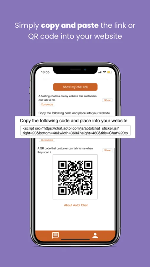 3 - SIMPLE: simply copy and paste the link into the header or footer of your website to see the floating chatbox. Alternatively, you can also upload an image of the QR code to your website to allow customers to chat with you when they scan it.