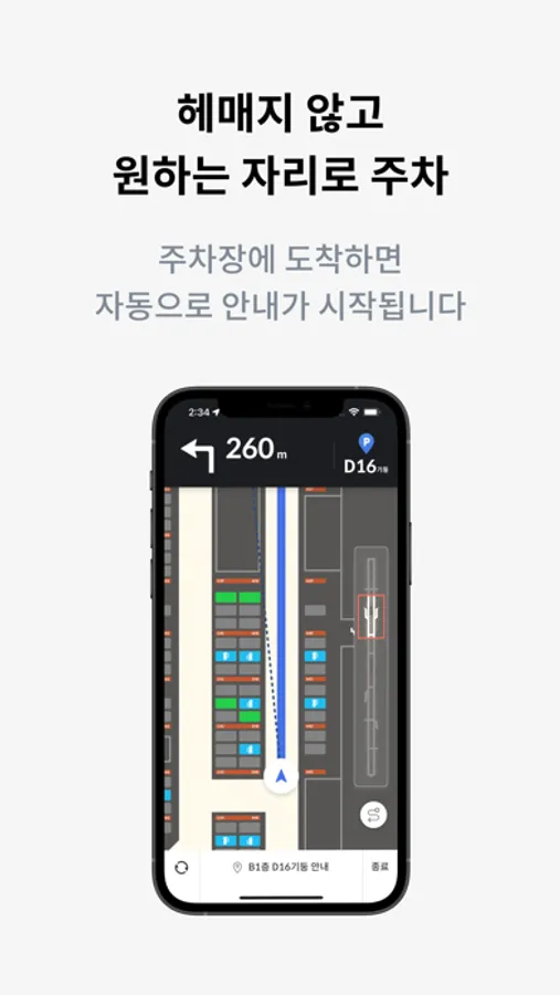 - GPS 신호가 닿지 않는 실내에서도 내 위치를 정확하게 찾아냅니다. 게다가 주차장의 실시간 정보를 이용해 비어있는 자리까지 정확하게 안내해준답니다. 이제 빈 자리를 찾아 빙글빙글 돌지 마세요!
