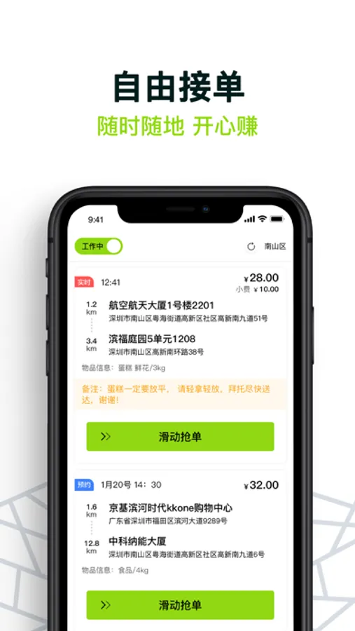 接单灵活,兼职配送员自由接单,入职专职合理派单。