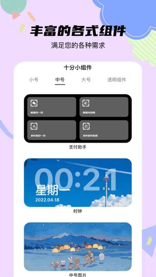 十分小组件是一款功能丰富的ios14小组件App,App内有丰富的主题和各类图片,您可以随意组合进行调整,满足您个性化的需求。