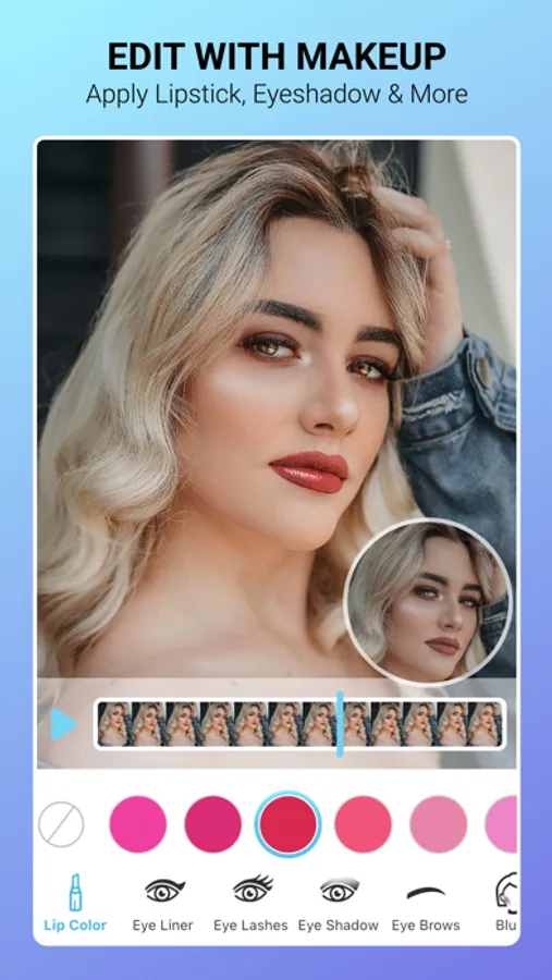 ◇ Edit videos with an instant makeover including lipstick, eye shadow, eyebrows, eyelashes, eyeliner, full look & more