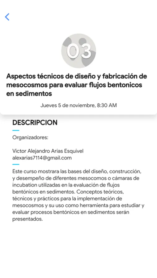 Por eso te ofrecemos esta aplicación como un beneficio adicional para que no te pierdas ninguna de las actividades que se llevaran a cabo. Aquí podrás encontrar el calendario completo de los trabajos que se van a exponer, tanto en su modalidad de presentación oral como en formato póster. También puedes conocer la ia información de las conferencias magistrales que se presentan en esta edición. Tiene disponible también la información de los cursos asi como los horarios yl contacto con los instructores.