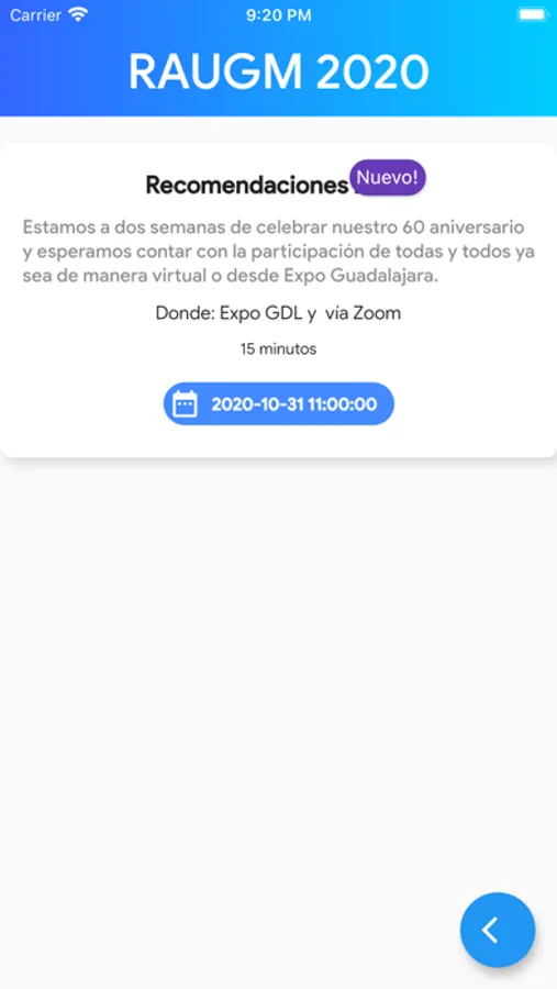 Además podrás organizar una agenda a la medida usando el botón para agendar las plácticas que sean de tu interés. Por último es importante notar que esta aplicación no consume tus datos, casi la totalidad de la información que se presenta esta ya incluida en la descarga e instalación.
