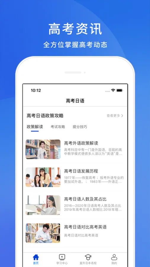 为日语高考学生及机构提供高考日语政策、高考日语知识、高考日语介绍等相关高考信息,以及历年高考题库、线上线下课程的APP。