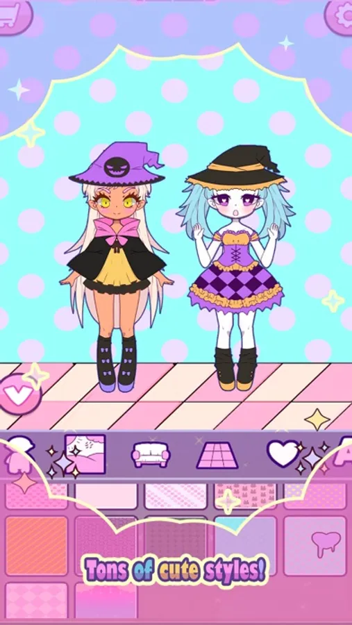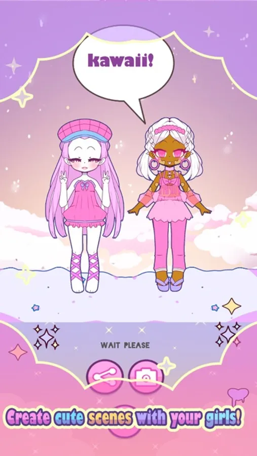 With your kawaii dolls created, you can make them interact through speech bubbles, decorate your room, or scenario, to create your kawaii wallpapers that can be saved to your phone or shared with your friends.