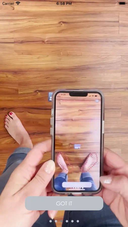 The SizeRight app uses AI and Computer Vision to measure your feet and determine your median shoe size accurately. A future version of this app will automatically provide recommendations of best fitting shoes for you.