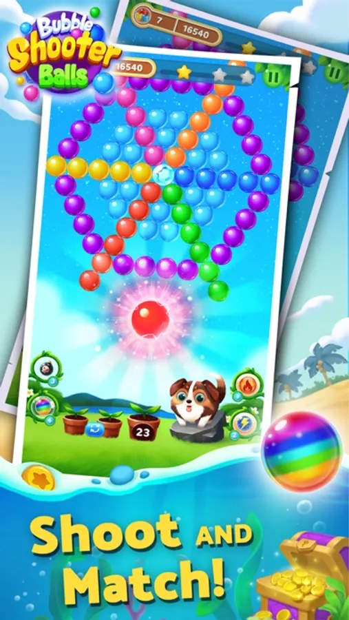 Enjoy blasting bubbles and solving puzzles for FREE! Spend your holiday playing this awesome bubble shooting puzzle game and enjoy hundreds of joyful levels wrapped with amazing boosts and power-ups to solve those puzzles.