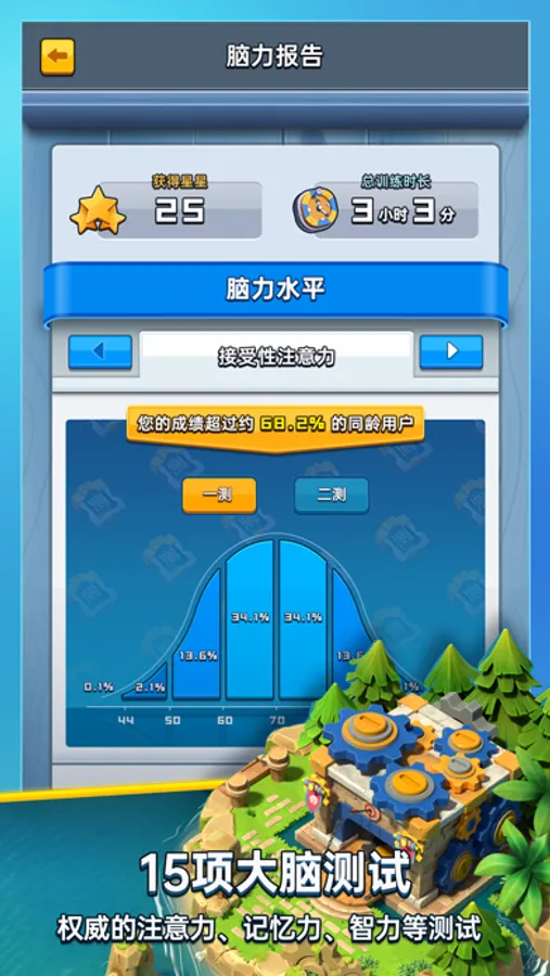 含15项权威的脑力测试,包括注意力测试、记忆力测试、智商测试、执行功能测试等。