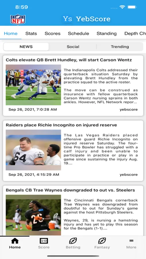 YebScore to get latest sports news coverage, odds, player props, future, scores, highlights, DFS Tools, NBA , MLB , NFL, NHL, College Football, NCAA Basketball, PGA,Fantasy News & Sports, Stats, NFL Targets , Projections , ADP , PPR , Players Props , Futures and Team Stats .