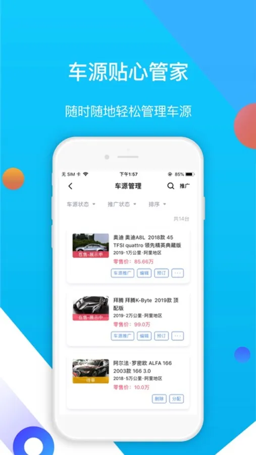 易车伙伴二手车商版是为二手车商提供的车源管理和营销的业务管理平台,车源一次发布,可以在多平台同步展示车源信息,助力二手车商获得更多售卖机会。